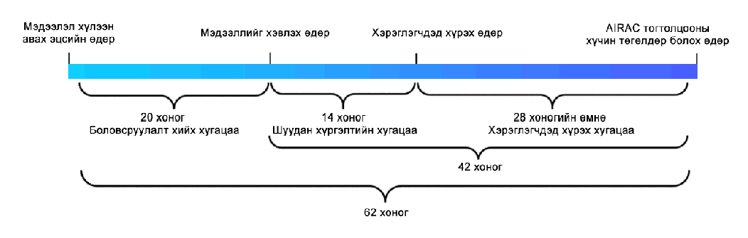 | МЭДЭЭЛЭЛ ХҮЛЭЭН АВАХ ЭЦСИЙН ӨДӨР | МЭДЭЭЛЛИЙГ ХЭВЛЭХ ӨДӨР | AIRAC ТОГТОЛЦООНЫ ХҮЧИН ТӨГӨЛДӨР БОЛОХ ӨДӨР |